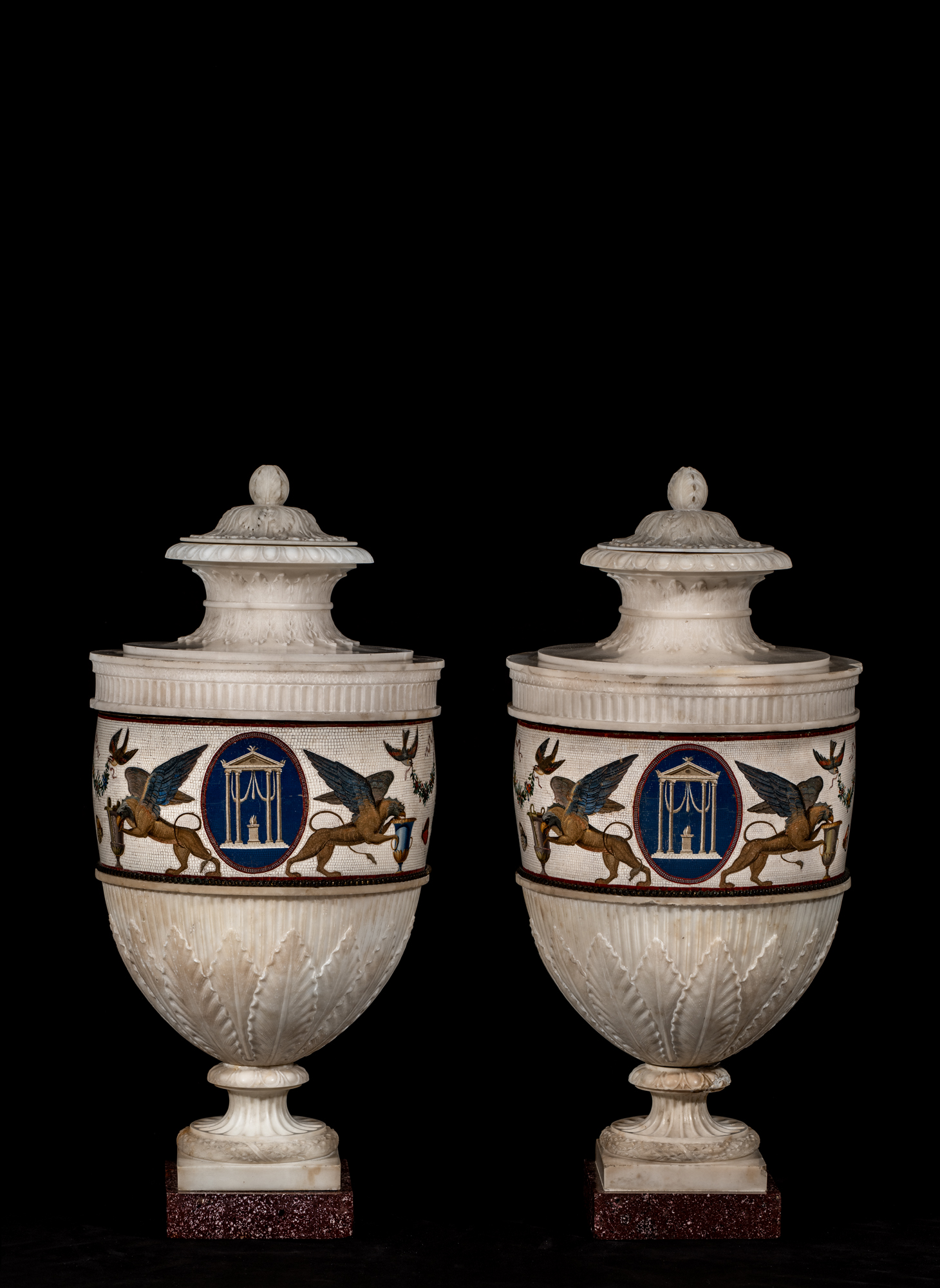 The Scientific Committee of the 33rd Florence International Biennial of Antiques has decided to award the Decorative Arts and Design Prize to the pair of statuary marble vases by Giacomo Raffaelli (Rome, 1753–1836) and Nicola De Vecchis (Rome, documented 1795–1834), presented at the ALESSANDRA DI CASTRO stand.